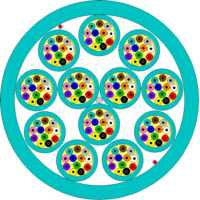 Loose tube layer-stranded, central strength member, high tensibility yarn, periphery strength, gel-filled protection, water-proof, peak performance, small diameter, light weight.